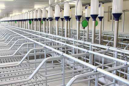 Auch bei Schweinen gilt je mehr Licht desto einfacher sind hohe Tageszunahmen zu realisieren. Bei mehr als 20.000 Lux an einem sonnigen Tag im Freien ist es nicht verwunderlich, dass sich die Tiere bei 200 Lux wohler fühlen, als bei dämmrigen Bedingungen. Je nach Land unterschiedliche Tierschutzvorschriften fordern als Mindestbeleuchtungsstärke bis zu 80 Lux im Stall für mindestens 8 Stunden pro Tag.
