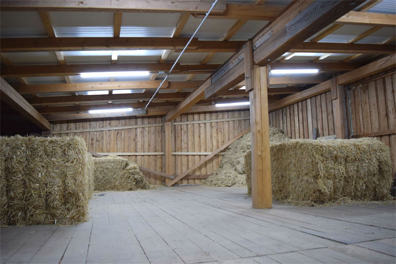 Das Strohlager wurde aufgrund der niedrigen Raumhöhe mit LED Röhren LRI-018-01 von TerraLED ausgerüstet. Aufgrund des hohen Leuchtwinkels von 270° wird auch die Decke mitbeleuchtet, dies lässt den Raum heller, höher und freundlicher erscheinen: